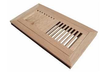 Imágenes muestran roble rojo y registro de montaje al ras del piso y la ventilación que de roble rojo de borde terminado.