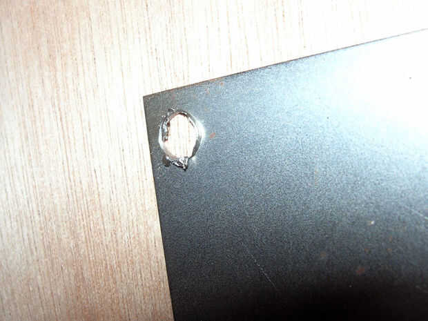 No te olvides de poner un pedazo de chatarra de madera o algo similar en donde está la perforación para no poner un agujero en cualquiera que sea tu hoja está sentado en el.