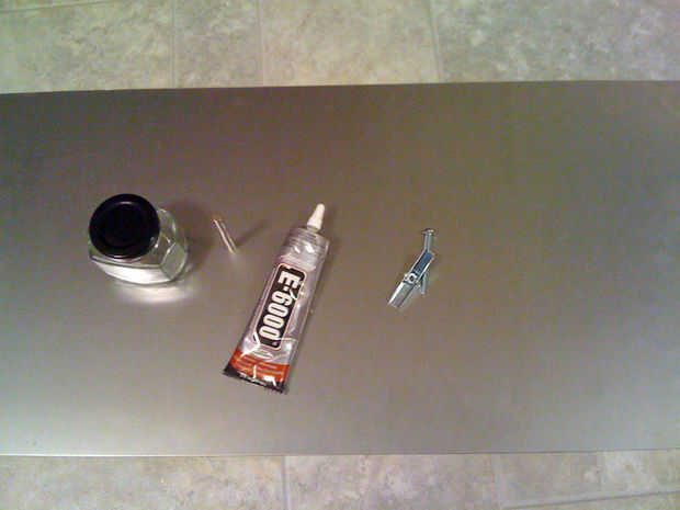 3. pegamento. He utilizado E-6000 (comprado en Walmart?). Lo único que no me gusto de esto fue el tiempo de secado. Al menos 16 horas. También era fibroso y tenía una tendencia a obtener por todas partes, aunque no llegó a ser pegajoso, por lo era bueno.