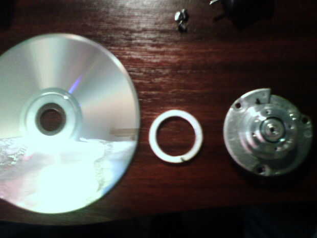 Poner el motor en el motor (¿no es irónico?). Una manera de poner allí la aleta. Para mí fue fácil que usé el viejo motor de disco duro y un anillo de los discos que estaba allí.