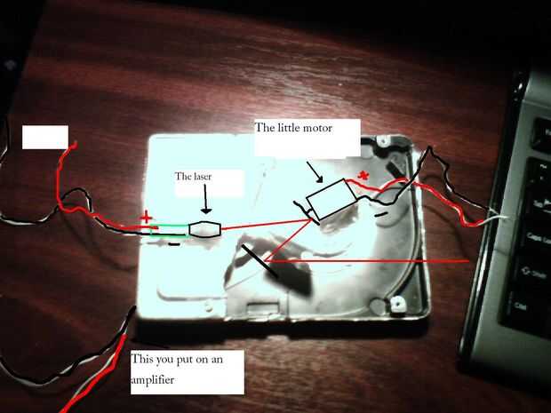 Esto es un espectáculo láser increíble y es bastante barato, usando algunas cosas tienes ahí, como:-un láser (puede utilizar más que uno),-un soporte de tubo de ensayo para cada láser (que el laser pueda descansar sobre),-altavoces estéreo que tienen