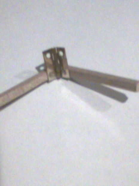 Fije la bisagra a ambas piezas de madera por lo que puede doblar libremente. Asegúrese de que todavía hay dos agujeros abiertos. Se utilizarán más adelante.