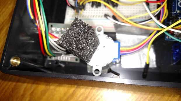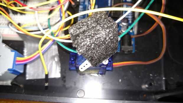 Cuando se coloque la tapa sobre la caja después de que todo está conectado como se muestra Asegúrese de alinear el tornillo con la espuma para que cuando los motores gire las cúpulas también lo serán.