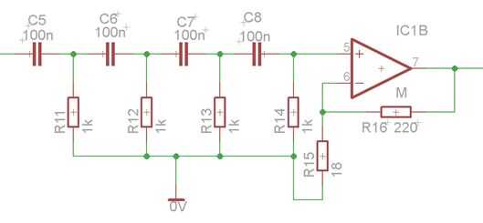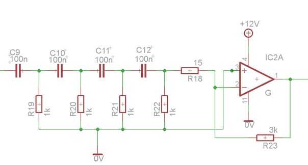 Para crear una cuarta clase pasiva invertir filtro de paso alto, que tienen en el amplificador final, tenemos la misma ecuación para calcular la frecuencia de la esquina, cambia sólo la ecuación para calcular la amplificación que es el siguiente: Av = - (R23 / R18)