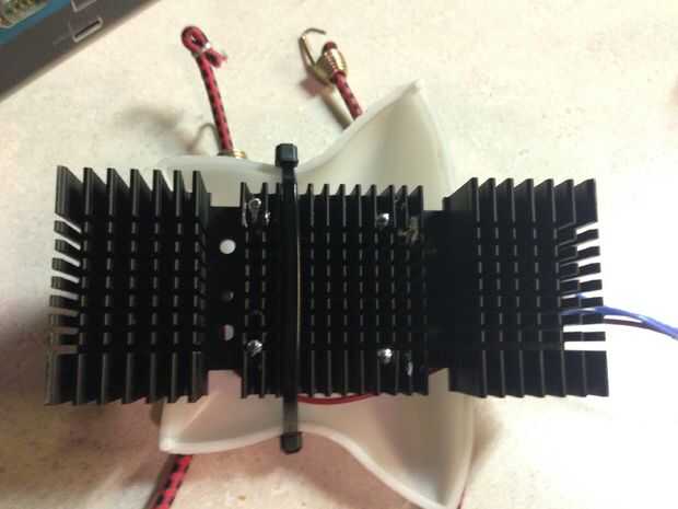 Usé un viejo disipador de Pentium III para montar un RGB Led de 50W y ajustaron las resistencias de la serie al disipador de calor. Esto hace fácil de utilizar el controlador genérico de mi otros instrucable. Vivo cerca de un aeropuerto activo usé una fuente de 24V en lugar de la fuente de 36V para que seleccioné las resistencias. Empecé a pensar que un 6000 Lumen efecto estroboscópico luz en mi patio no sería una gran idea.