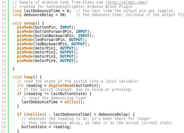 //arduino specific setup void setup () { Serial.begin(31250); pinMode(3,OUTPUT); pinMode(4,OUTPUT); pinMode(5, OUTPUT); digitalWrite(3,LOW); digitalWrite(4,LOW); digitalWrite(5, LOW); } Esto es una parte muy importante de la Arduino. Esto fija la tasa de baudios y la tasa en la cual el Arduino Lee los bits que se está enviando a la velocidad que requieren los sistemas midi. A continuación establece pines 3, 4 y 5 a los pines de salida. Finalmente escribe los pines de salida para fuera o bajo.