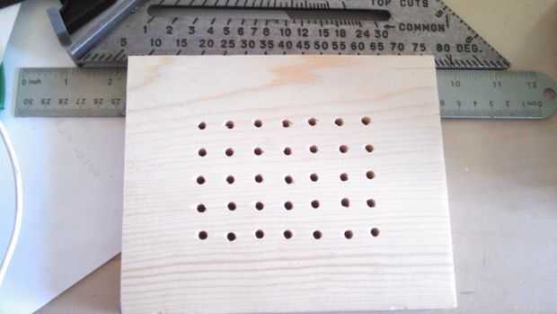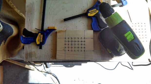 - Perfore un agujero a través de cada punto con la broca de 3/16