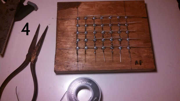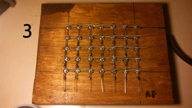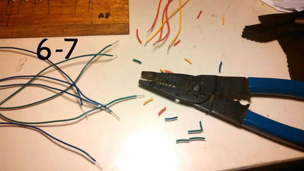 7. Si está utilizando gancho encima del alambre como yo, corte y pele los cables para cada fila y columna lo suficiente para llegar a la Arduino