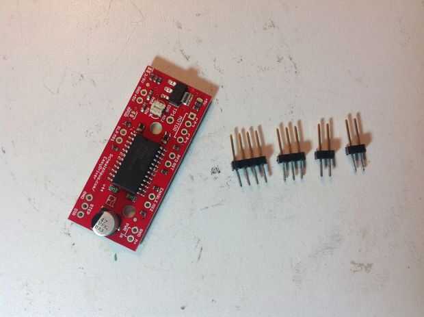 Agarra el controlador de Motor paso a paso y algún encabezado que son 1 x 4 1 x 3 patillas y cabezales de perno 1 x 2. La soldadura de estos encabezados en los puertos de Motor A y B; M + y GND; GND, DIR y paso; y 5V. MUY IMPORTANTE: SI USAS EL MSP430 ENTONCES USTED NECESITARÁ TAMBIÉN CORTO 3/5V JUMPPER QUE EL MSP430 ES SEGURO.
