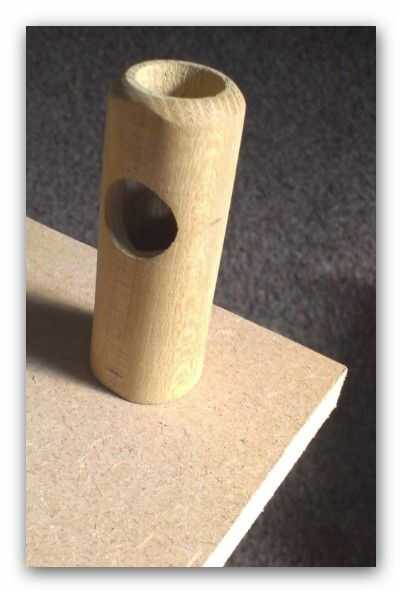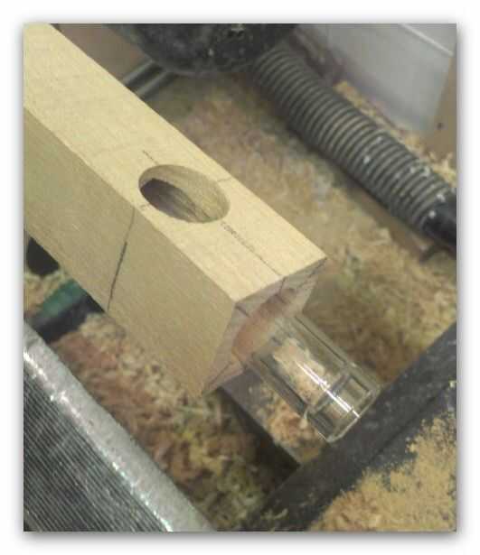 Como quería tanto luz alcance el sensor posible hice uno de los agujeros un poco más grande. Había arreglado la pieza hacia arriba y me corte una espiga justo debajo de donde la parte inferior del Cuvet sentado en el agujero central y parted de una vez había sido redondeada y suavizada.