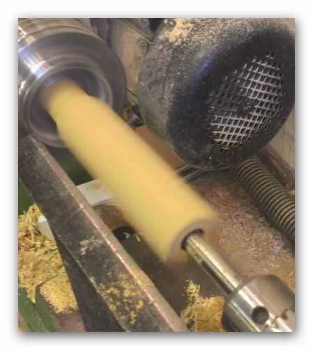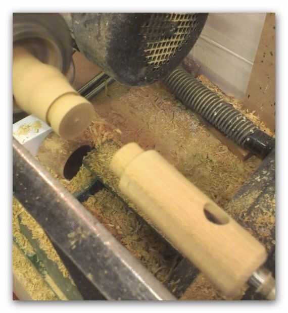 Para este instructable he hecho uno en el torno. Empecé haciendo girar un extremo que más tarde se celebraría en las quijadas en la iglesia del torno, esto garantizaría que se centraba. Una vez volteada taladré un agujero en el extremo que el Cuvet - ver la tercera imagen y pasó a perforar dos agujeros uno frente a otro en el extremo cuadrado de la pieza. Este sería el camino a través de la muestra para que la luz alcance el sensor.