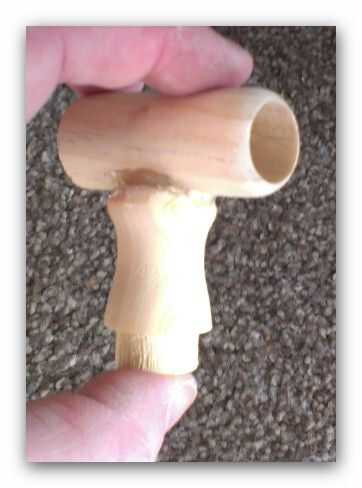 Para sujetarlo otra vez recurrí al torno para hacer un hueco del tubo y de apoyo, que se mantendrían en su lugar por otra espiga a través de la base.