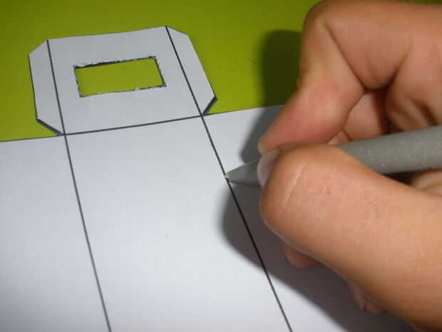 Coloque la plantilla sobre el cortado hacia fuera paperstock ahora, y escribe con un lápiz los dobleces. Si desea también puede utilizar una regla. Entonces... doble.