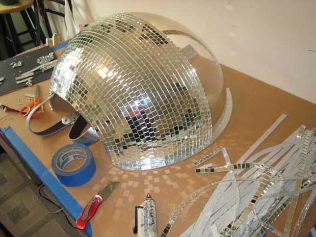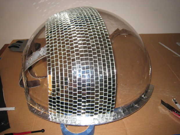 Caliente pegar las filas una a una fue un proceso lento... pero tengo dos domos cubiertos en un par de noches. Terminar cada borde con una fila de espejos así.