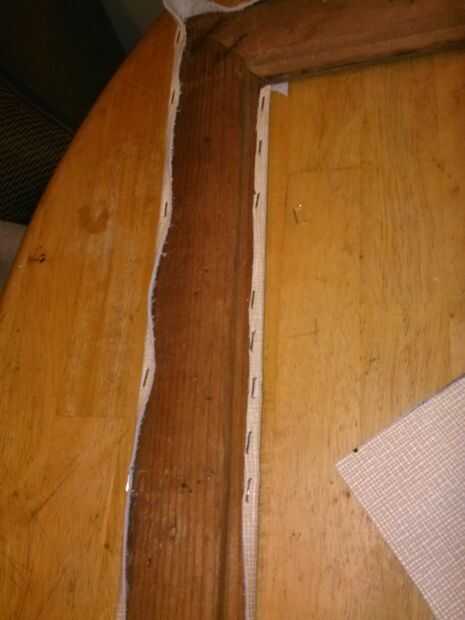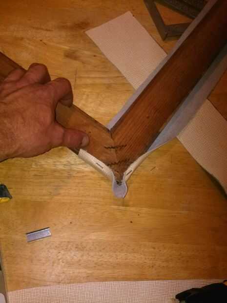 Así que corte las tiras de la primera capa de cuero de aproximadamente 4" más largo que el marco, de esta manera hay algo para tomar contacto con a tensar.