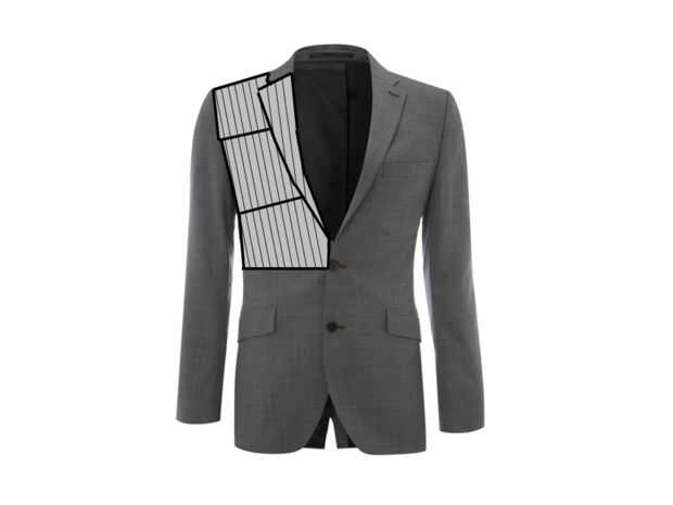Cortar las telas a rayas en pedazos de espejo que se pegan en la chaqueta.