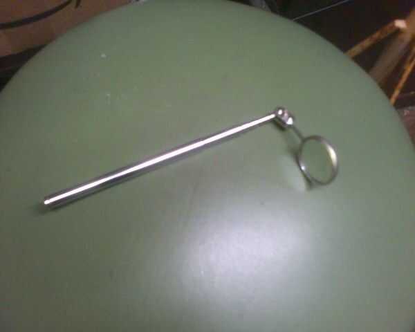 -En primer lugar, conseguir un espejo de inspección. Puerto carga herramientas vende estos por $2 en las ventas de la acera.
