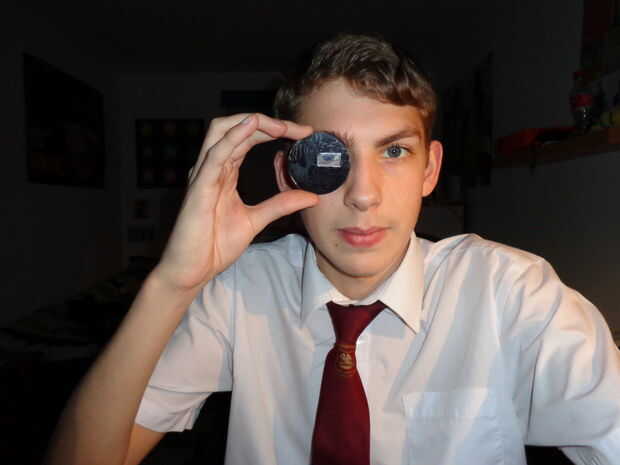 un espejo pequeño (tal vez de un espejo compacto antiguo, sin uso)