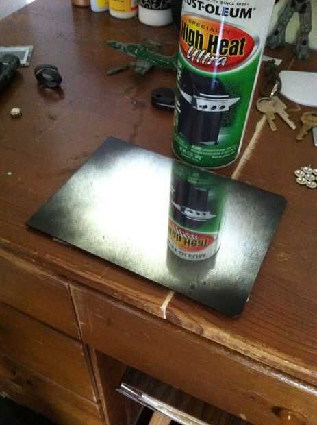 mientras seca la pintura en aerosol, sacó otra puede confundir y rociar las esquinas de mi espejo, esta vez con un negro básico. antes de que podría secar, tomé un trapo húmedo y limpio acabó con los puntos del centro. una vez este seco, lijar un poco a lo largo de los bordes del círculo dio esa mirada smoky, vieja-timey que después.