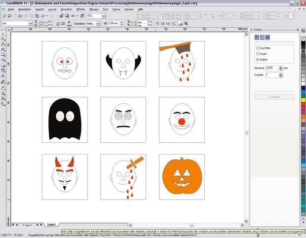 El Halloween máscaras también con corelDraw.