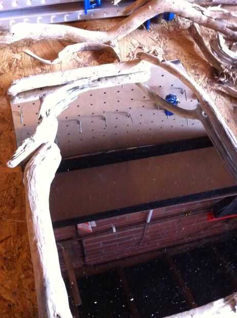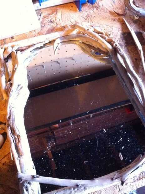 Utilicé las secciones más grandes primero, como quería el espejo para tener el aspecto de toda la madera que se entrelaza con un montón de capas. Que significaba que tenía que cubrir todos los bordes del vidrio.