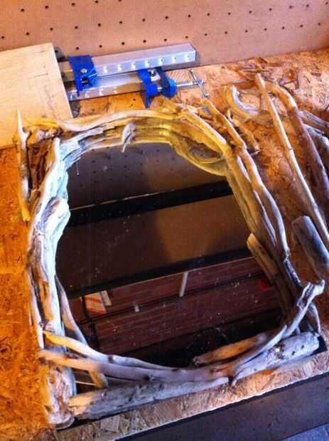 Después de agregar más capas sobre la base del marco el espejo estaba empezando a ocurrir, el único problema que tuve fue: 1) elegir qué piezas miró derecho y 2) es evidente que las esquinas y los bordes todavía tenían cristal visible.