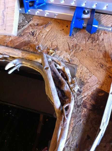 Tengo alrededor de esto fue que algunas de la madera todavía tenían corteza sobre ellos. Después de pelar la madera y pegar estas virutas en los boquetes que resultaron para ser una buena idea ya que también le dio ven quería para toda la madera se entrelazan y parecen una sola pieza sólida.