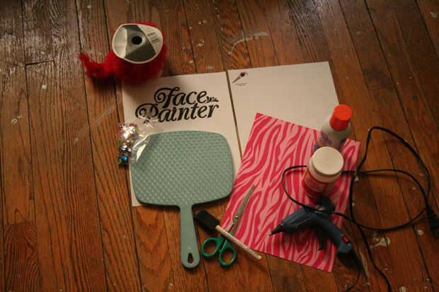 • Opcional: 1/2 yarda (1/4" de ancho) del ajuste difuso para el exterior; granos / rhinestones (una pistola de pegamento caliente aparece si usted planea en usar esos artículos); 1/2 yarda de cinta si desea colgar su espejo del mango