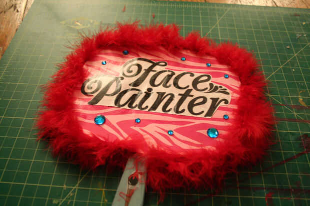 Incluso puedes embellecer tu espejo mediante la adición de pequeñas perlas o pedrería en la parte posterior y añadir un recorte difuso alrededor del borde exterior de la diversión textura! Aquí, he añadido un rojo borroso ajuste y azul diamantes de imitación para estallar hacia fuera contra el papel rosado de la cebra. Usted puede también atar en 1/2 yarda de cinta si desea colgar el espejo de su mango. No hice esa parte, pero eso es opcional para usted!