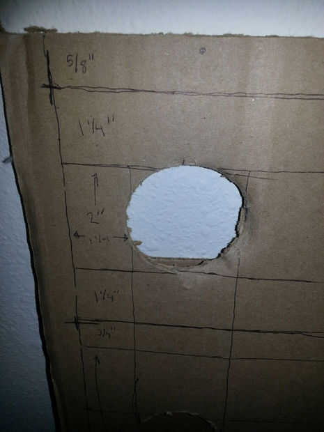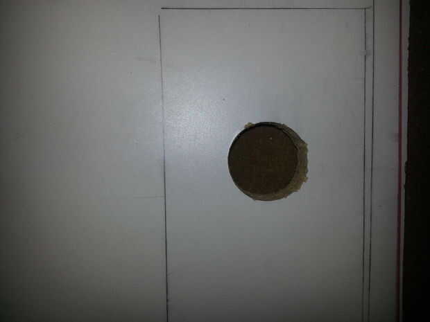 Usé un taladro y una broca de 1 1/2 pulgada para cortar los orificios para los focos de luz.