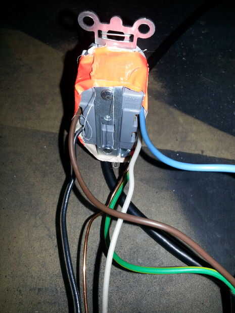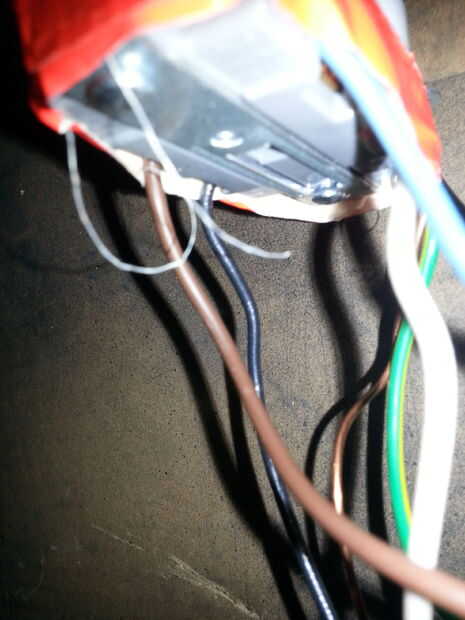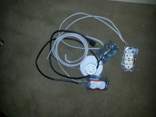 A la vanidad que comenzó con un enchufe de tres patas de alambre. Me corte el extremo y tenía los tres cables que salen. Hay un azul verde y marrón.