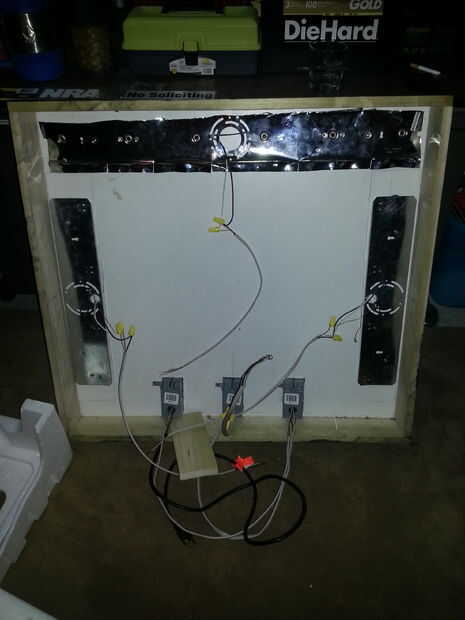 Para montar los cuadros eléctricos usé cajas de plástico. Los pones en los orificios precortados para que la caja quede al ras con la parte superior de la junta superior. Necesitaba utilizar soportes "L" metálico para montaje de tesis en la parte posterior de la Junta. Se montaron las tiras de la barra de vanidad con tornillos.