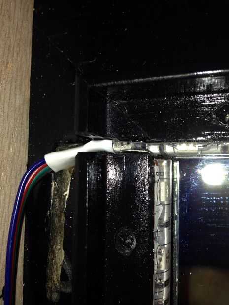Aquí hay algo que aprendí la manera dura: el adhesivo en la parte posterior de estas tiras es bueno, pero no grandes, y la tira mantiene separa el marco. Puesto que vamos a ser adjuntando los, tenía sentido reforzar este adhesivo. Usé un epoxy de 2 partes que mezcla en la boquilla y funcionó una tira delgada a lo largo del borde de la tira de LED para asegurarse de que no separe otra vez.