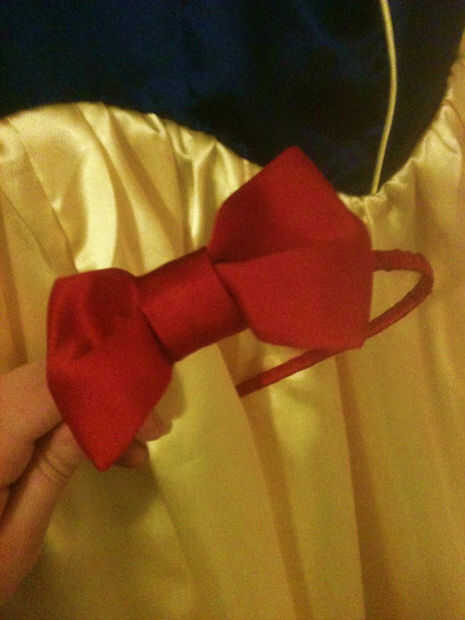 La venda también se hace de rojo Satén, envuelto alrededor de la banda y un gran arco decorativo añadido.