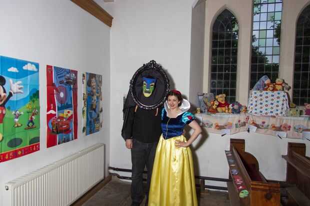 Así que me puse este traje para fiesta de cumpleaños 30 de mi amigo, que era una "bola temática de Disney". Ahora naturalmente tenía que ser un concurso de disfraces. Como yo iba como ahora blanco, mi marido Jake fue como "El espejo" de la película.