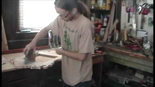 Con su trabajo de desplazamiento, puedes empezar hacer el marco. Puse mi sierra de inglete a 45 grados y establecer un tope para asegurarse de que los cuatro lados sería exactamente igual. Después de cortarlos, cada uno corrió con mi cepillo, luego les dio un ligero lijado.