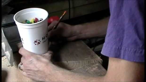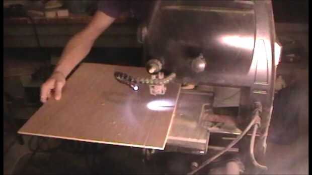 Usé un 2 de 10 para la base de mis estanterías. Hice un grado treinta de corte para la parte delantera. Para asegurarse de que mi marco de espejo sería capaz abra sobre una bisagra, usé una taza para dibujar un círculo en la parte superior de esta pieza, luego cortar en la sierra. A continuación corté mis estanterías de algunos restos de madera, 17" para cada lado, 14" para la parte superior e inferior y 13" para el estante del medio, contabilidad para la madera de 1/2" a cada lado.
