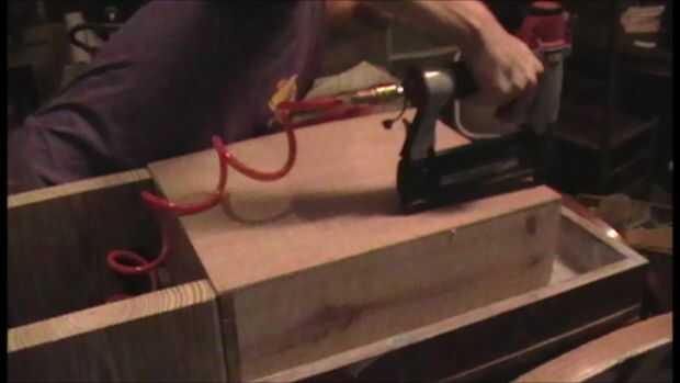 Para la espalda, corté un pedazo de madera contrachapada de 1/4" para el tamaño del gabinete. Luego pegué abajo y brad lo clavó en el lugar.