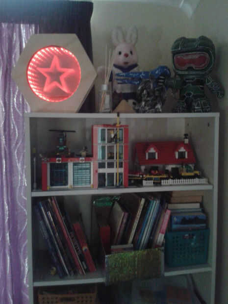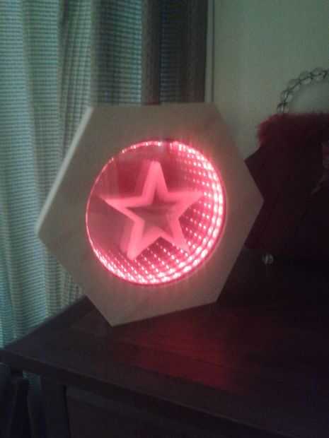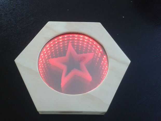 Aquí es un espejo infinito que hice como regalo de cumpleaños para mi novia. Perfecta si se pegan de ideas presentes y desea juguetear alrededor un poco ya que es una creación muy simple. Sólo me tomó un par de días de trabajo por unas horas por la tarde a hacer y estoy muy contento con el producto terminado. El efecto de infinito realmente se destaca en la oscuridad y su genial para observar en persona. No dude en hacernos cualquier pregunta si usted necesita cualquier ayuda.