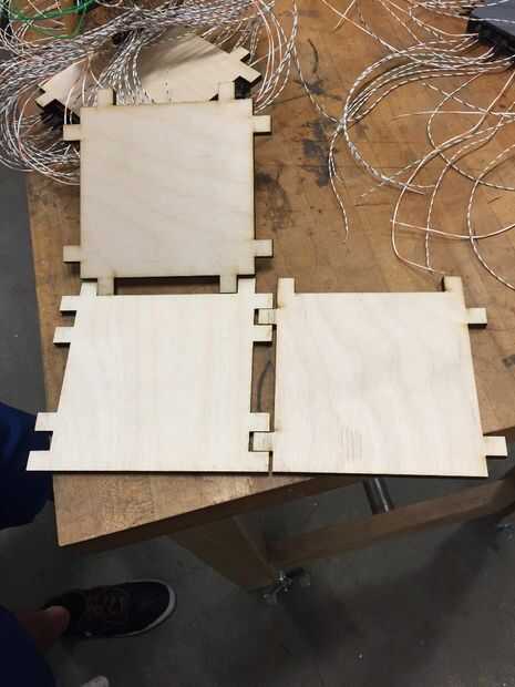 Unir los cuatro lados y asegúrese de que todos los cables de LED ir en el centro a través del espacio entre piezas adyacentes de madera. Trate de hacer como mucho espacio en la parte superior, como el siguiente paso es agregar el espejo superior, y no hay mucha opción en cuanto a donde pueden ir los cables y circuitos.