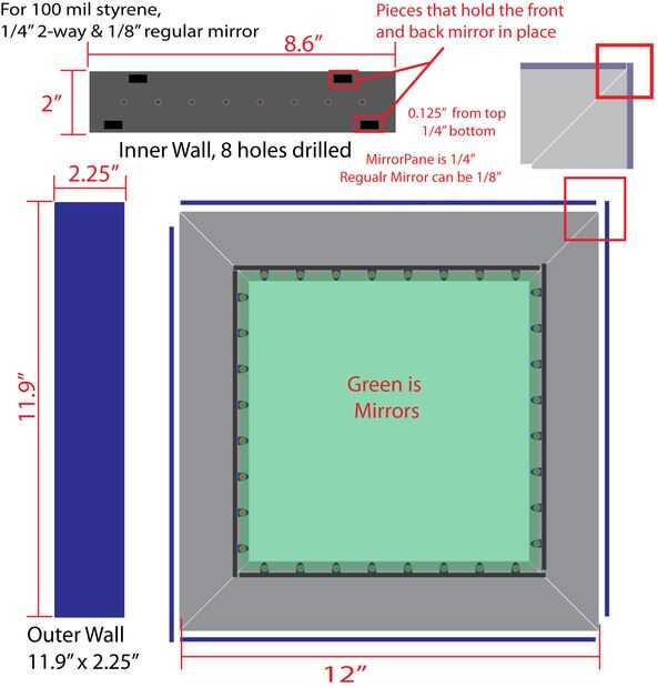 El Kit contiene todo lo necesario para recrear este proyecto. Todo de alta calidad cristal espejos, piezas para construir un marco de plástico durable, 32 x LED (color es opción de los compradores), kit de controlador de LED, DC Jack, -fuente de alimentación y cable. Sólo suministro de alguna pintura en aerosol y algunas herramientas.