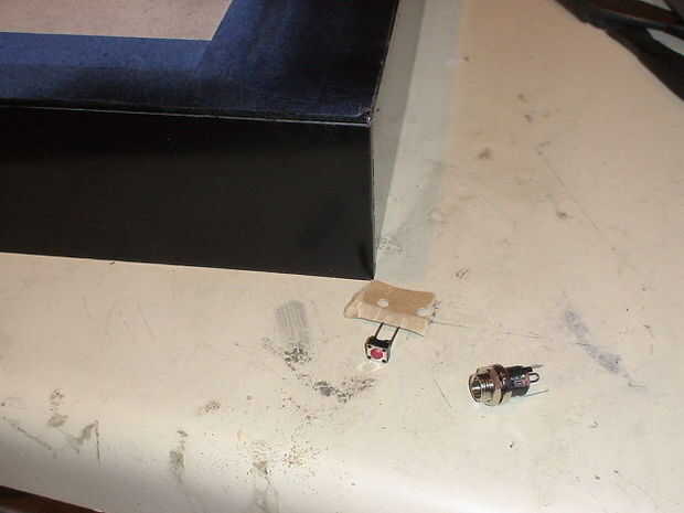 -Taladre un agujero de 5/16" y luego usar una cuchilla de afeitar para hacerlo un poco más grande (en forma cuadrada) para caber en el botón más adelante. Este botón se sentarse a ras en el exterior.