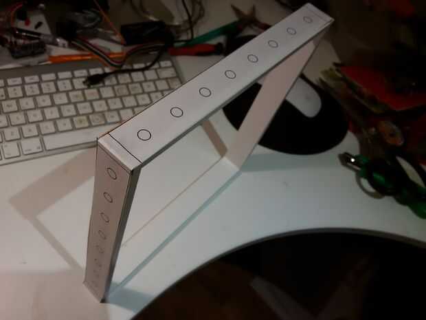 Hice una plantilla de perforación simple y pegados a los lados del marco interno para obtener la separación incluso de los LEDs.