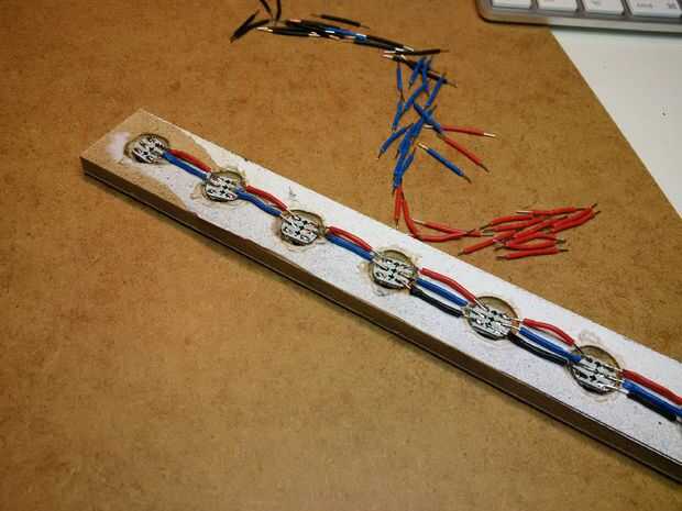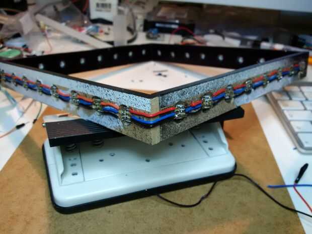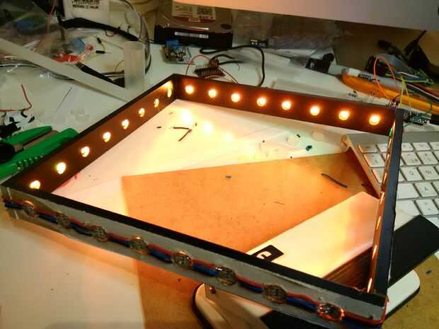 Estos LEDs tienen positivo (+ 5V), negativo (GND) y un pin de control. Sólo necesitará conectar en una serie larga. Estos tiene un aproximadamente 1mm de espacio alrededor del marco interior, asegúrese de que el cable se ajusta dentro del marco externo.
