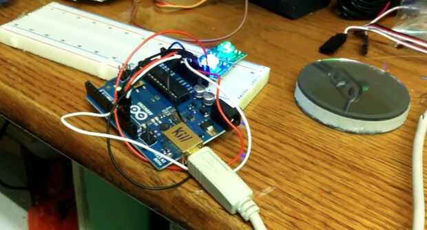 Cada conjunto de ShiftBrite contiene un pequeño microprocesador que le permite abordar cualquiera de las luces en una cadena serial que contiene tantas luces como usted quiere, con sólo unos pocos pines de entrada en el Arduino. Esto no sólo permitirá diferentes colores, pero también iluminación patrones, diferentes efectos de parpadeo y el efecto estroboscópico y todo tipo de cosas interesantes.