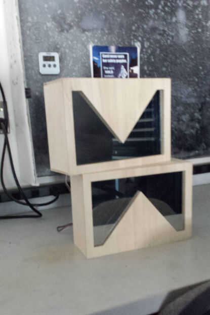 Según una tarea en mi clase de multimedia digital, yo he combinado dos tutoriales relacionados con Arduino en un objeto funcional! El resultado es un par de espejos infinito que flash rojo y azul según minuto fluctuaciones en la temperatura ambiente.