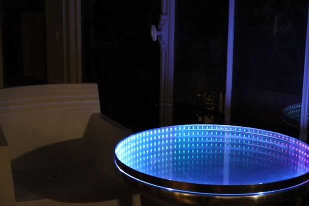 Ya hay varios proyectos para tablas de infinito que hay, pero mina tiene un enfoque ligeramente diferente por lo que vi antes así que pensé que contribuiría! Este diseño permite una mesa de tamaño personalizable, con fronteras muy finas que mejoran enormemente la ilusión óptica quitando mucho el volumen de madera y otros materiales.