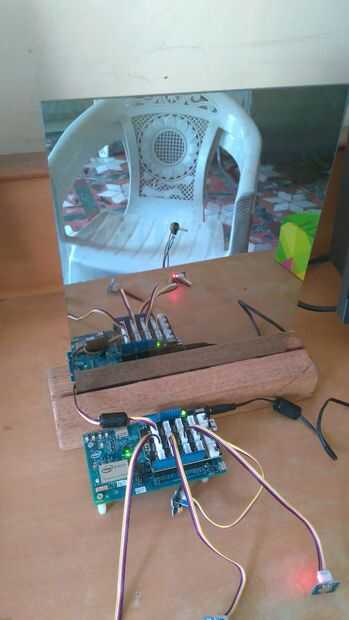 Para la previsión y las condiciones meteorológicas son lectura después de cada cinco minutos y recuperar los datos como temperatura. humedad, etc., de la respuesta JSON usando JSON.parse. Mostrar la condición actual del tiempo en la pantalla LCD cuando el usuario está cerca del espejo que se comprueba mediante Sensor de infrarrojos (sensor PIR en caso que tengas).