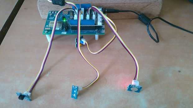 Se lee el sensor de infrarrojos (sensor PIR en caso que tengas) valor del sensor si es alta entonces se lee el valor del Sensor de luz y si es baja por debajo de un umbral encender LED azul (relé en caso si usted tiene que encender la luz).