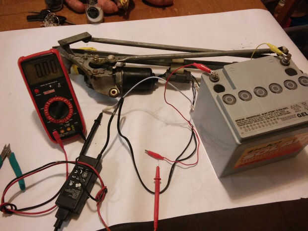 A diferencia de Tomatoskins, que necesitaba para probar el motor del limpiaparabrisas para ver cuánto actual necesito para ejecutarlo. utilizando una batería de coche de 12 voltios para alimentar el motor, sin carga, la corriente era alrededor 1,3 amperios. Si agrega carga al motor la corriente fue hasta aproximadamente 3,5 amperios. Tuve un 12 voltios 5 amperios potencia adaptador colocación alrededor y pensé que funcionaría perfectamente.